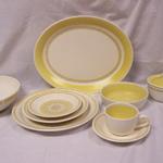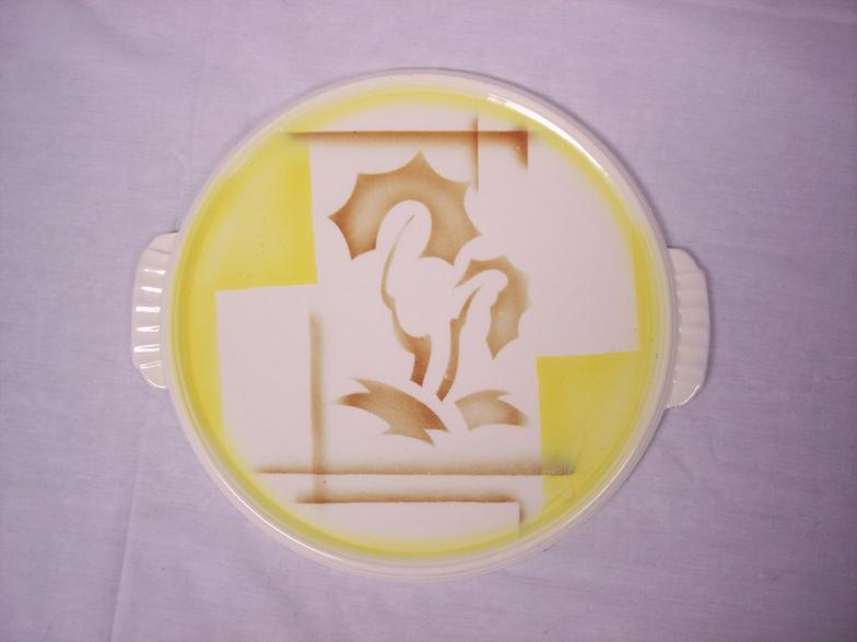 Yellow & Tans on Cream white with handles, no markings VG with flecks to edge