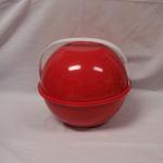 Red Ball with white handle,plastic dishes in Red, Green, Yellow, Orange, & White. Space Age Design.
