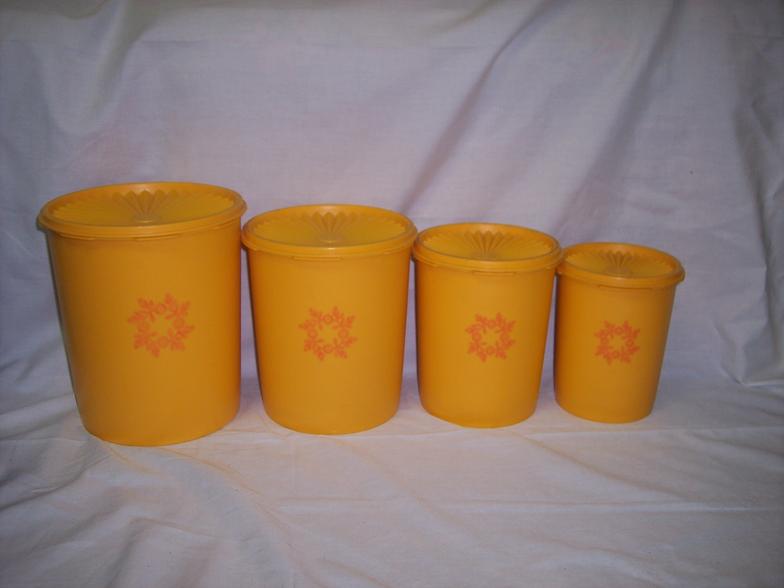 RETRO TUPPERWARE HARVEST GOLD CANISTER SET of 4 with lids.